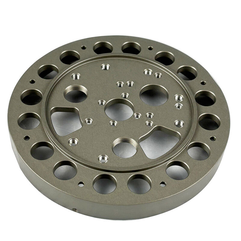 Precision CNC machined aluminum flange plate with hard anodized surface. Lightweight, durable and corrosion resistant. Ideal for semiconductor equipment, automation machinery and precision industrial applications. Custom CNC aluminum parts available.